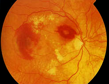 Es una lesión de la mácula, parte central de la retina responsable de la visión central, la que permite la visión de mayor calidad. Muchas personas mayores desarrollan degeneración macular como parte del proceso natural de envejecimiento del ojo. La sintomatología se manifiesta con una visión borrosa, zonas oscuras o distorsión en la visión central. Por lo general, no afecta su visión periférica.