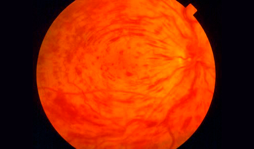 Oclusión venosa central (la vena central de la retina se obstruye).